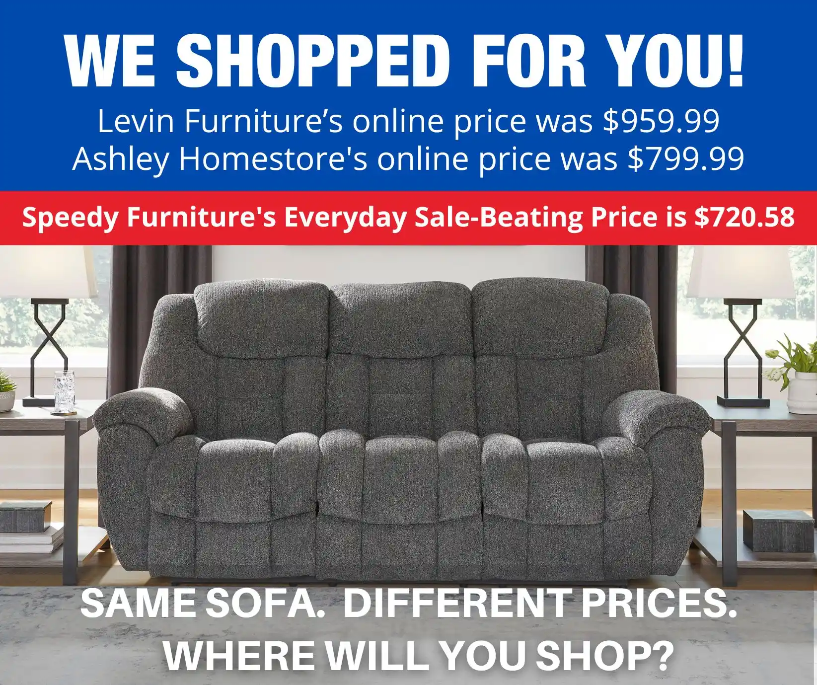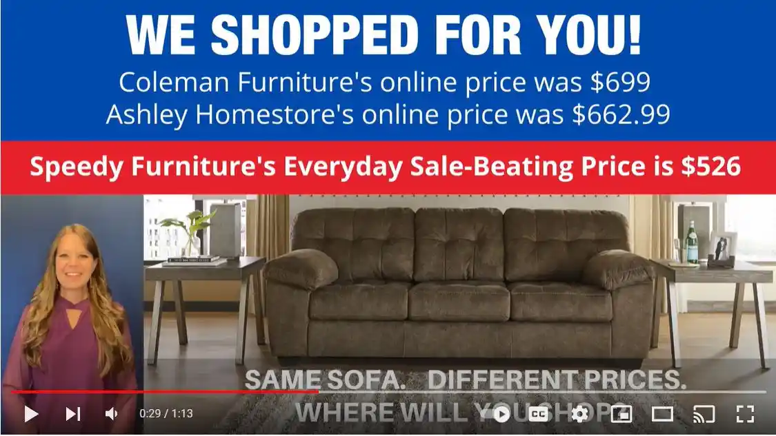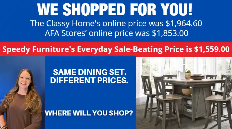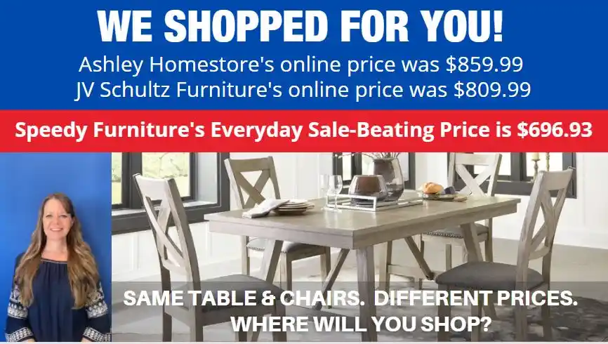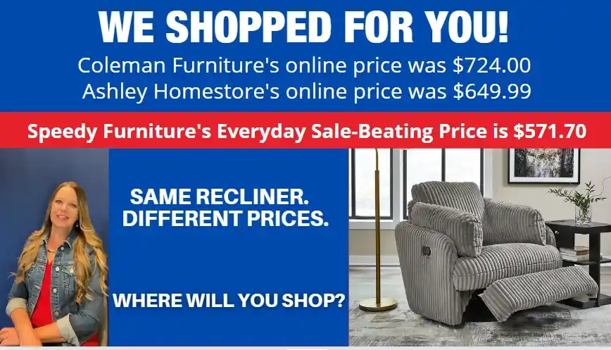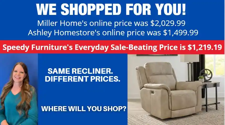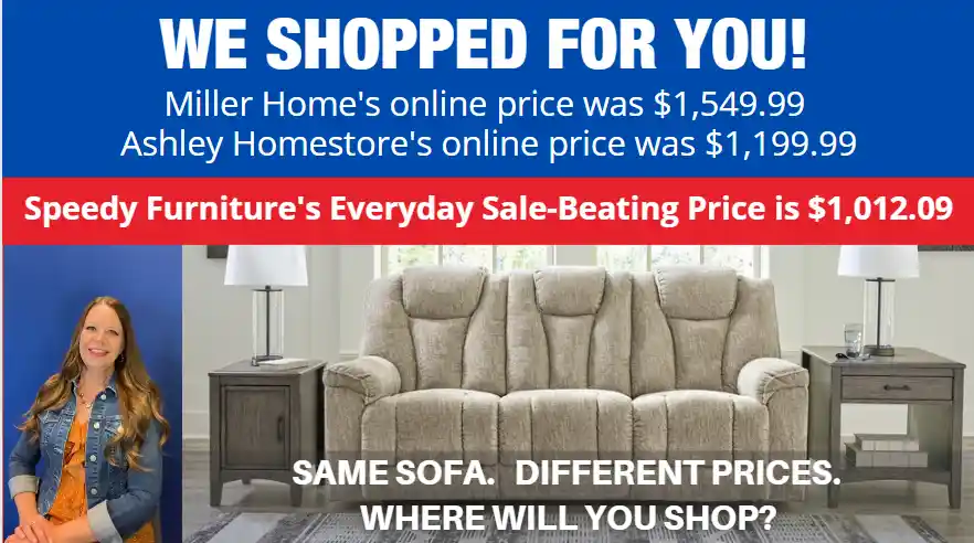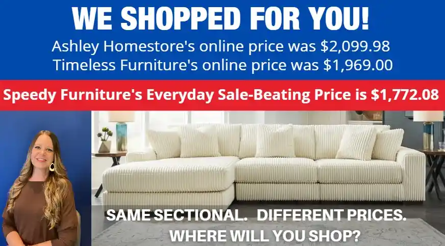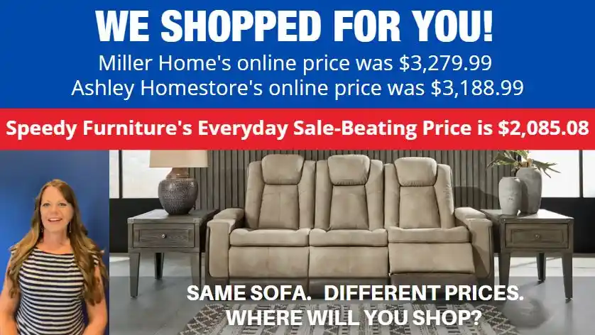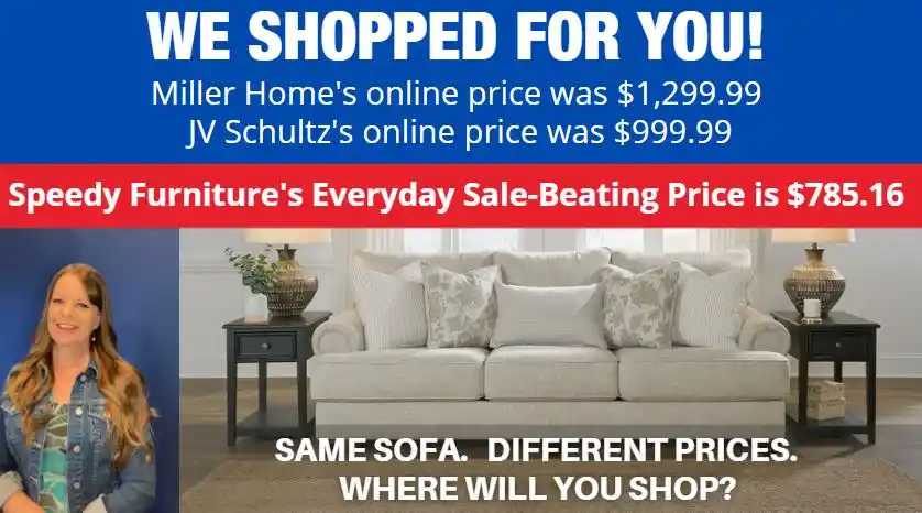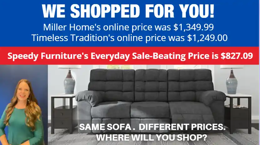 OF SPEEDY FURNITURE’S SALE-BEATING PRICES...
