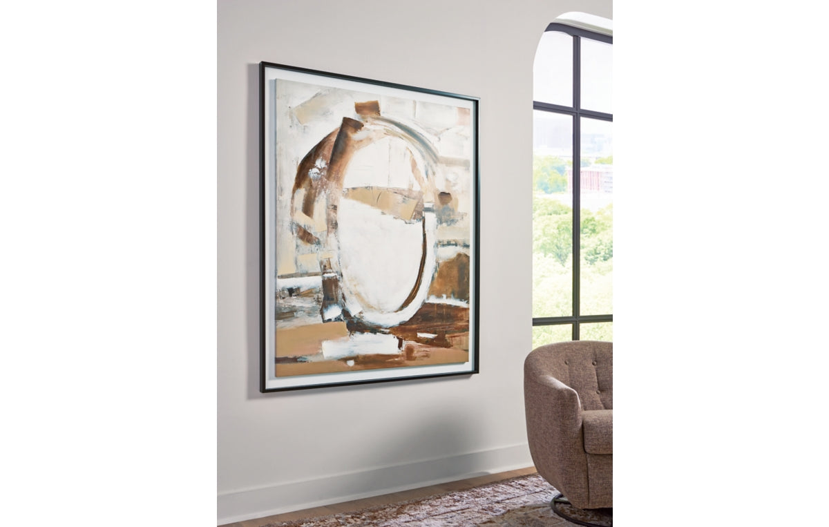 Craft a refined contemporary vibe with the earthy tones and abstract feel of this wall art. Its raised canvas design brings added depth and dimension to your decor. Hand painted details lend a unique artisanal touch. And it can hang four ways, providing the flexibility to style your space your way.