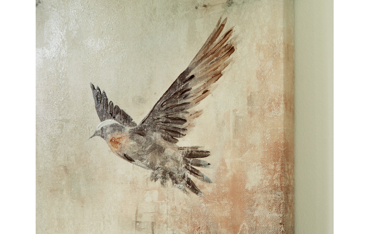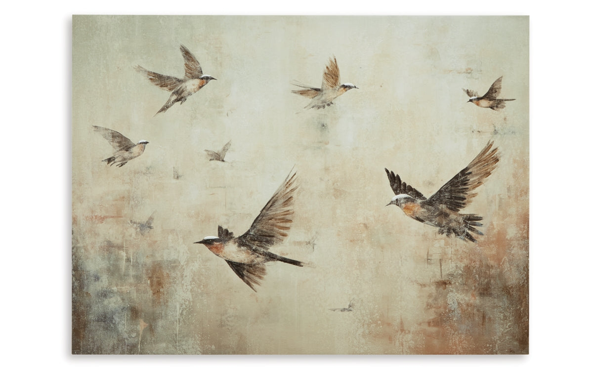 This canvas takes neutrals to the next level for a city-chic vibe. Hand-painted embellishments add textural interest while birds of a feather flocking together bring a touch of nature indoors. This striking piece of wall art is a standout in practically any space.