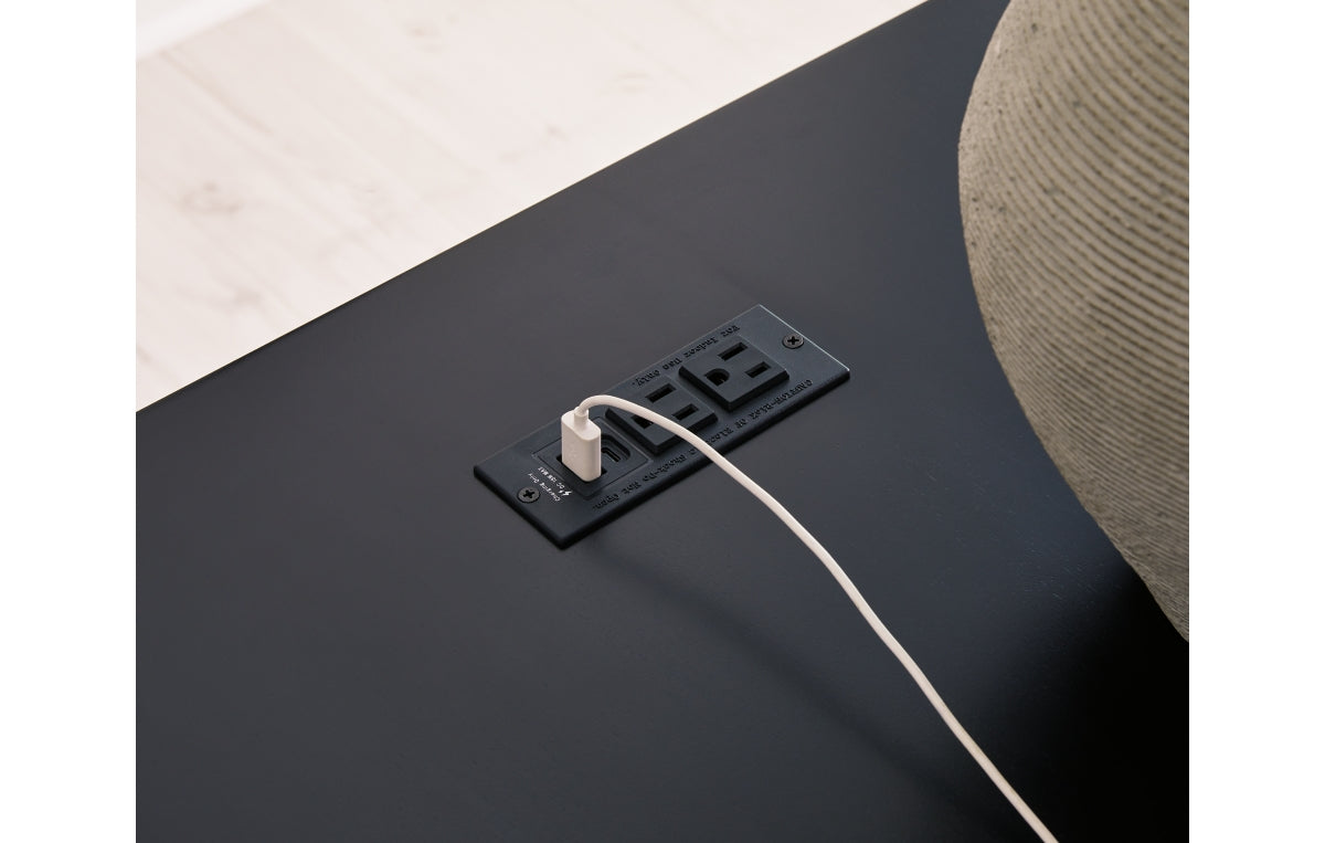 Double down on casual chic with the two-tone look of this credenza. With its warm brown and matte black finishes, it reflects your eye for modern design. The trend-right slatted styling on its doors brings added charm. And with the credenza's adjustable shelves, open storage and accessories drawer, keeping office essentials organized is a breeze.