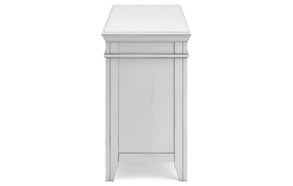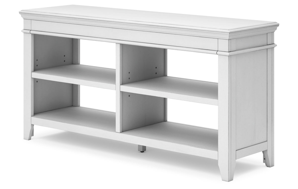 Make a style statement with this home office credenza. Its traditional design is updated with an on trend distressed whitewash finish. The credenza's open storage and adjustable shelving add up to a well-organized workspace.
