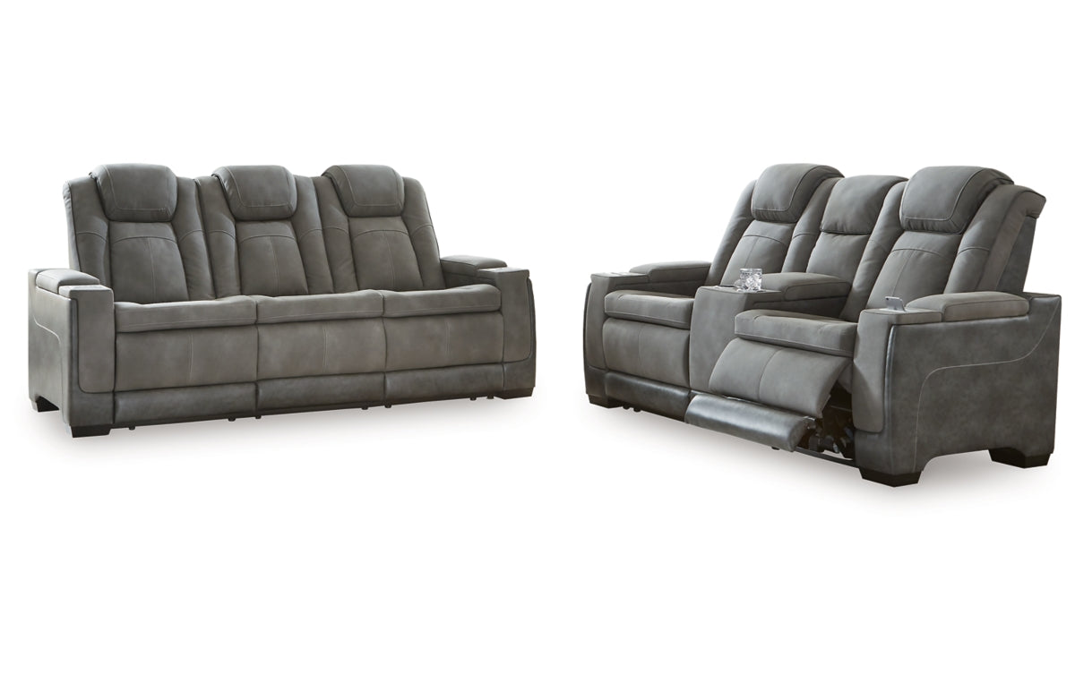 This sleek, ultra-modern power reclining seating package has it all. With designer style and head-to-toe comfort, it has the upscale look of leather at a scaled-down faux leather price. Its two-tone upholstery is more durable and water-repellent than regular leather, an added bonus for families. Features including wireless and USB charging, adjustable headrests and extended ottomans make this the next generation of power recliners.