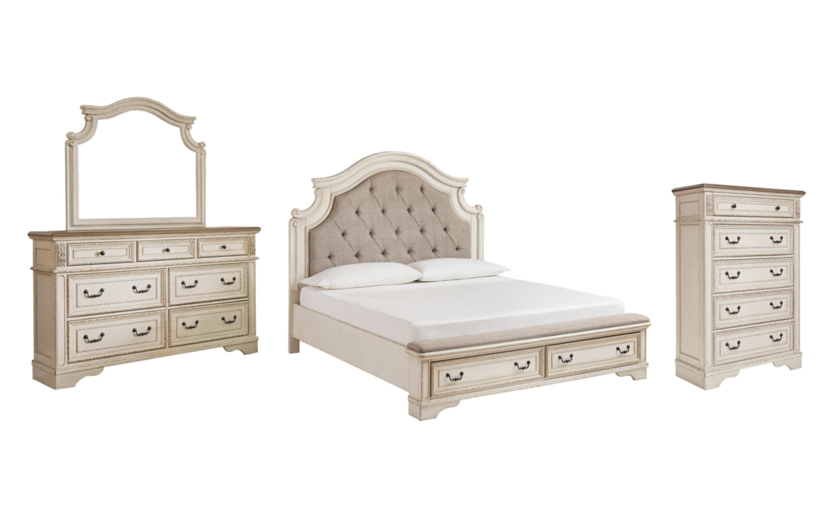 - B743B66: Realyn King Panel Storage Bed, Dresser, Mirror and 2 Nightstands
