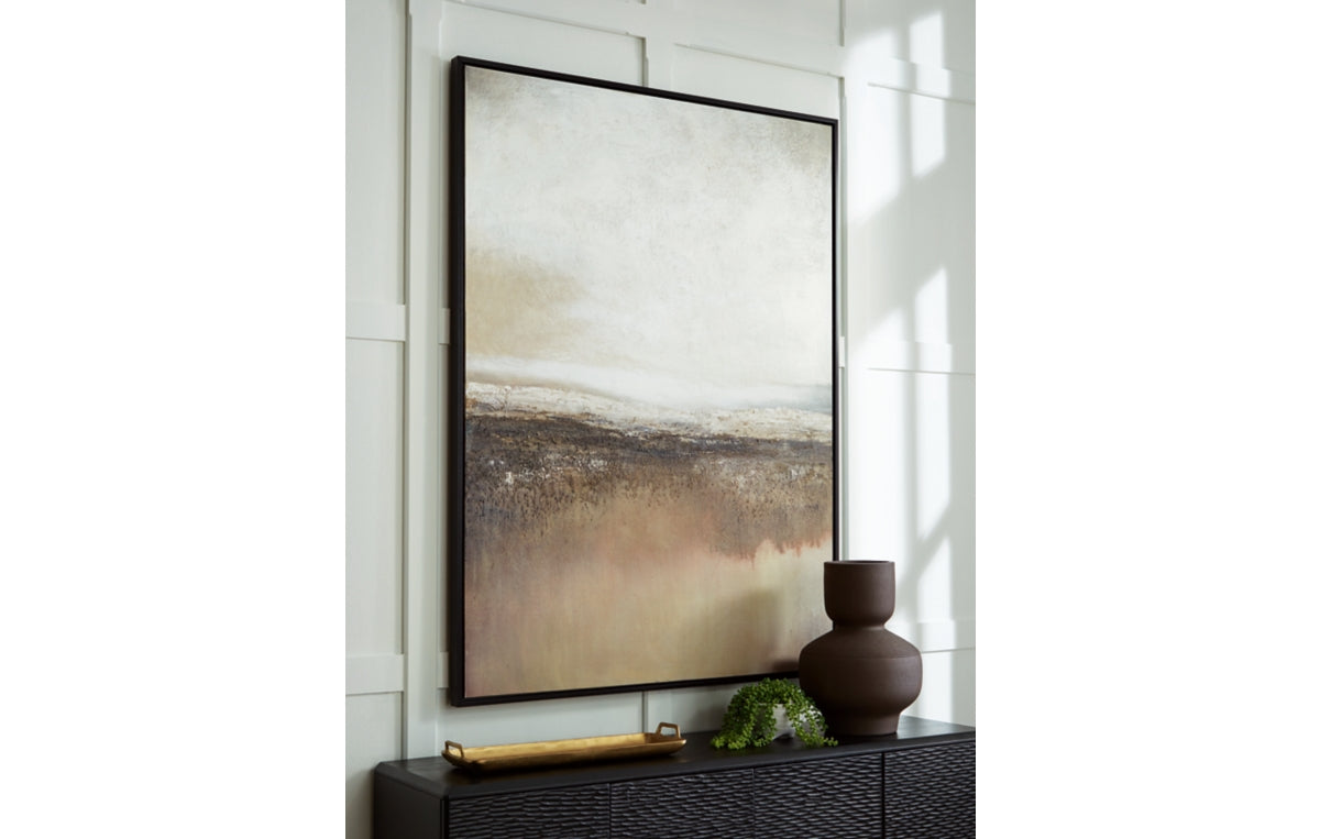 Lose yourself in the placid, abstract feel of this wall art. It's dressed in neutral shades of brown, white and gray for effortless versatility. Hand painted details showcase detailed craftsmanship, making it a striking statement piece to hang above a mantel or in a hallway.