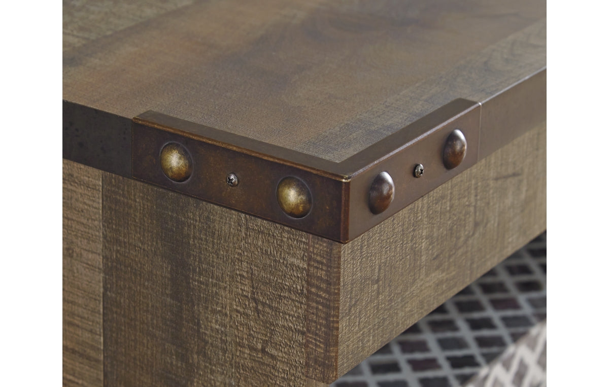 This TV stand with fireplace option makes your home on the range look so alluring. The aesthetic is earthy yet clean and sophisticated, paying homage to reclaimed barn wood with a rustic finish, plank-style details and nailhead trim. Removing the shelf allows room for an optional electric fireplace insert, adding instant warmth and romance.